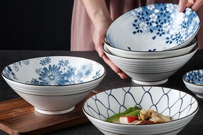 Japese style ceramic round noodle bowl