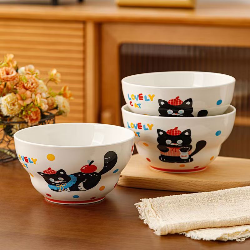 Cute Cat Underglaze Crockery Rice & Ramen Bowls Factory